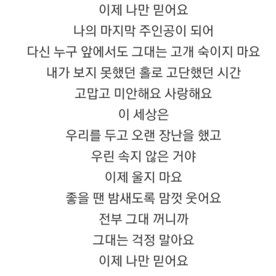 그곡은 '이제 나만 믿어요'라는 노래이다.