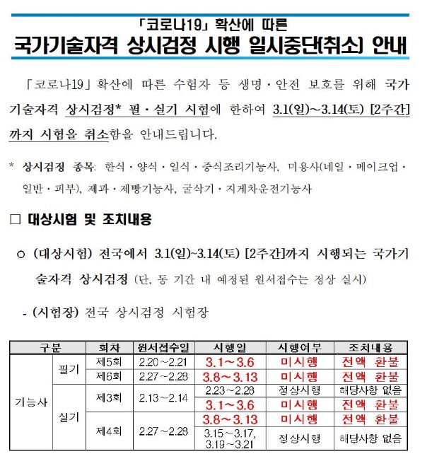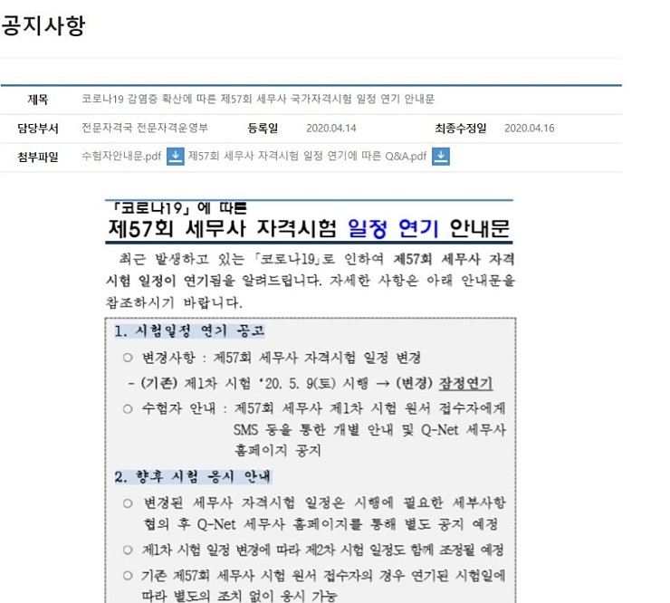 기사시험연기 관련내용(세무사자격시험)