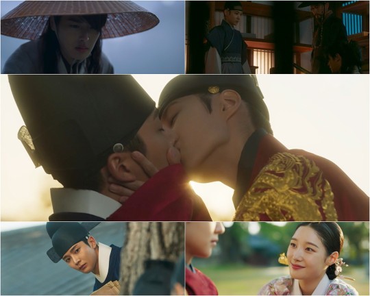 이렇게 한 차례의 폭풍이 지나가고, 휴식차 후원 나무에 기대 서책을 읽다 잠이 든 휘. 그 모습을 중전 노하경(정채연)이 “우리 전하 참 잘생기셨다”며 넋을 잃고 바라보다, 자신도 모르게 입술을 가져가고 말았습니다. 이 상황을 몰래 지켜봤던 지운은 “그리 무방비로 졸고 계시니, 많이 피곤하셨나 보다”라며 그만 질투심을 표출하고 말았습니다. 그런 지운이 귀여운 듯 보던 휘는 그를 둘 만의 장소인 폐전각으로 불러, 성큼성큼 다가갔고 그리고는 “정주서가 모두 감당하겠다 그랬지요? 나도 감당하겠습니다, 이 마음”이라고 고백하며, 지운의 가슴을 밀치는 박력을 시전했다. 그렇게 입맞춤까지 이어진 로맨틱한 엔딩에 설렘이 폭발했습니다.