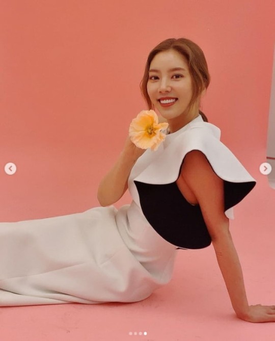 공개된 사진 속 꽃을 들고 환하게 웃은 손담비의 밝은 분위기가 인상 깊습니다.우아한 포즈와 눈빛은 청순하면서도 섹시한 느낌을 동시에 안깁니다.