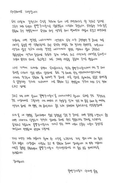 그리고 많은 분들이 사랑해주셨는데 마음이 무겁다는 심정을 보여줬다.